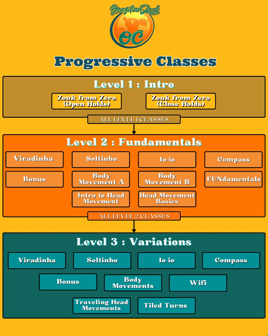 This level is the perfect introduction to understanding the body mechanics and structure of Brazilian Zouk! The details and concepts learned in this level are crucial for building a strong foundation to your dance and having the ability to smoothly continue your progression with confidence!